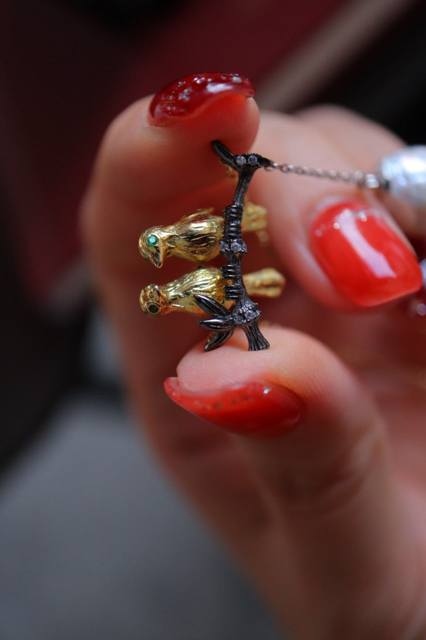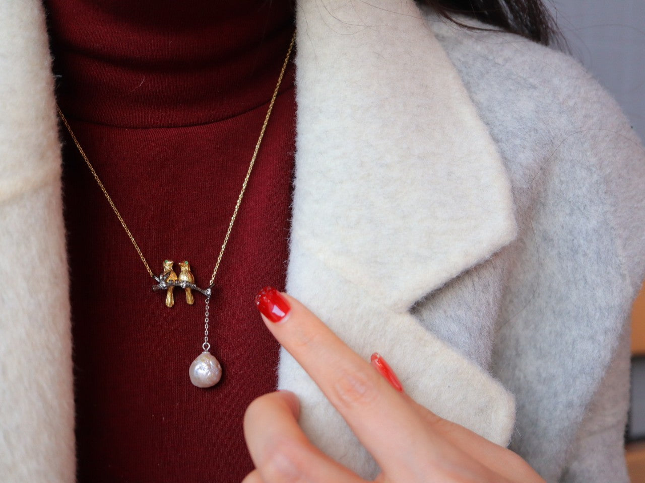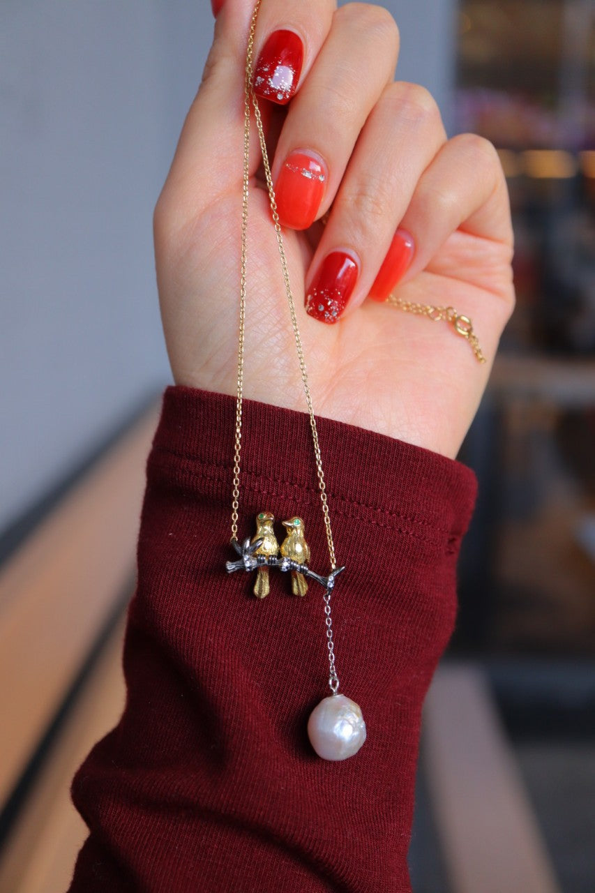Lovely Birds with natural pearl Necklace Sterling Silver 925