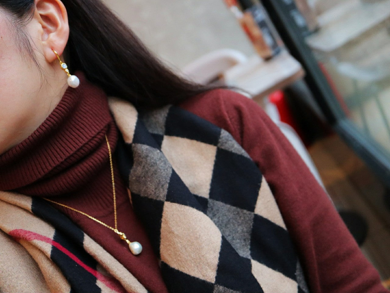 Baroque Glod Plated Sterling Silver 925 Natural Pearl & Blue Opal Necklace/Earrings