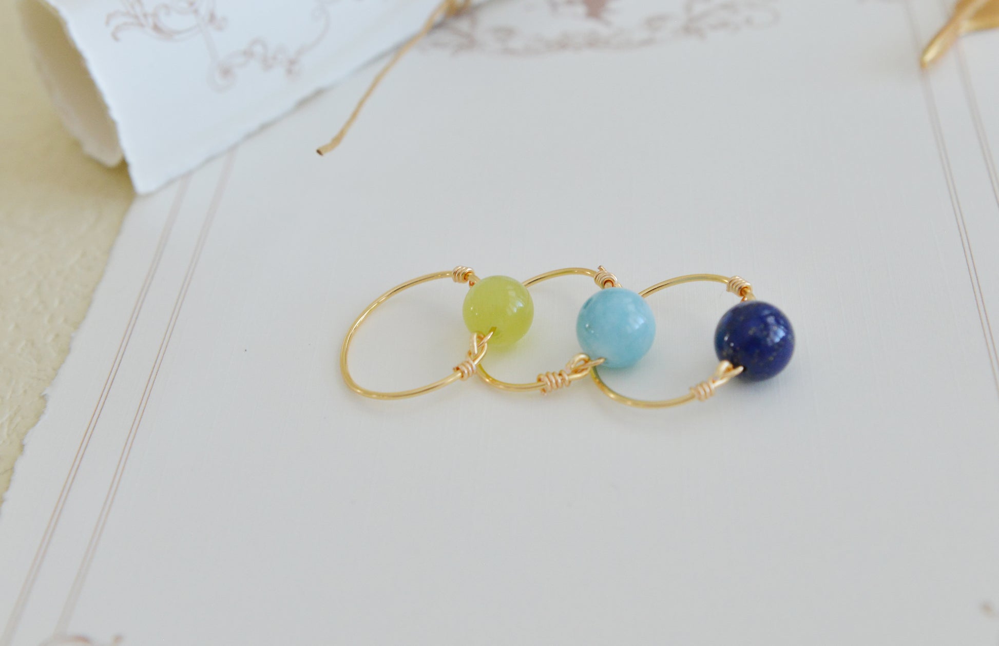 DIY KITS/Handmade Natural Gemstone/Simple Aquamarine Rings/Lapis Lazuli Rings/Green Cat's Eye Stone Rings