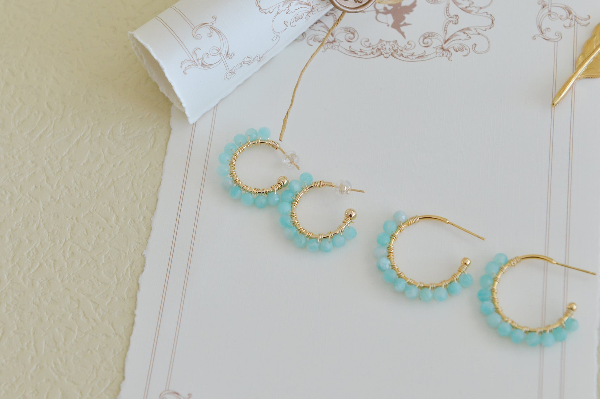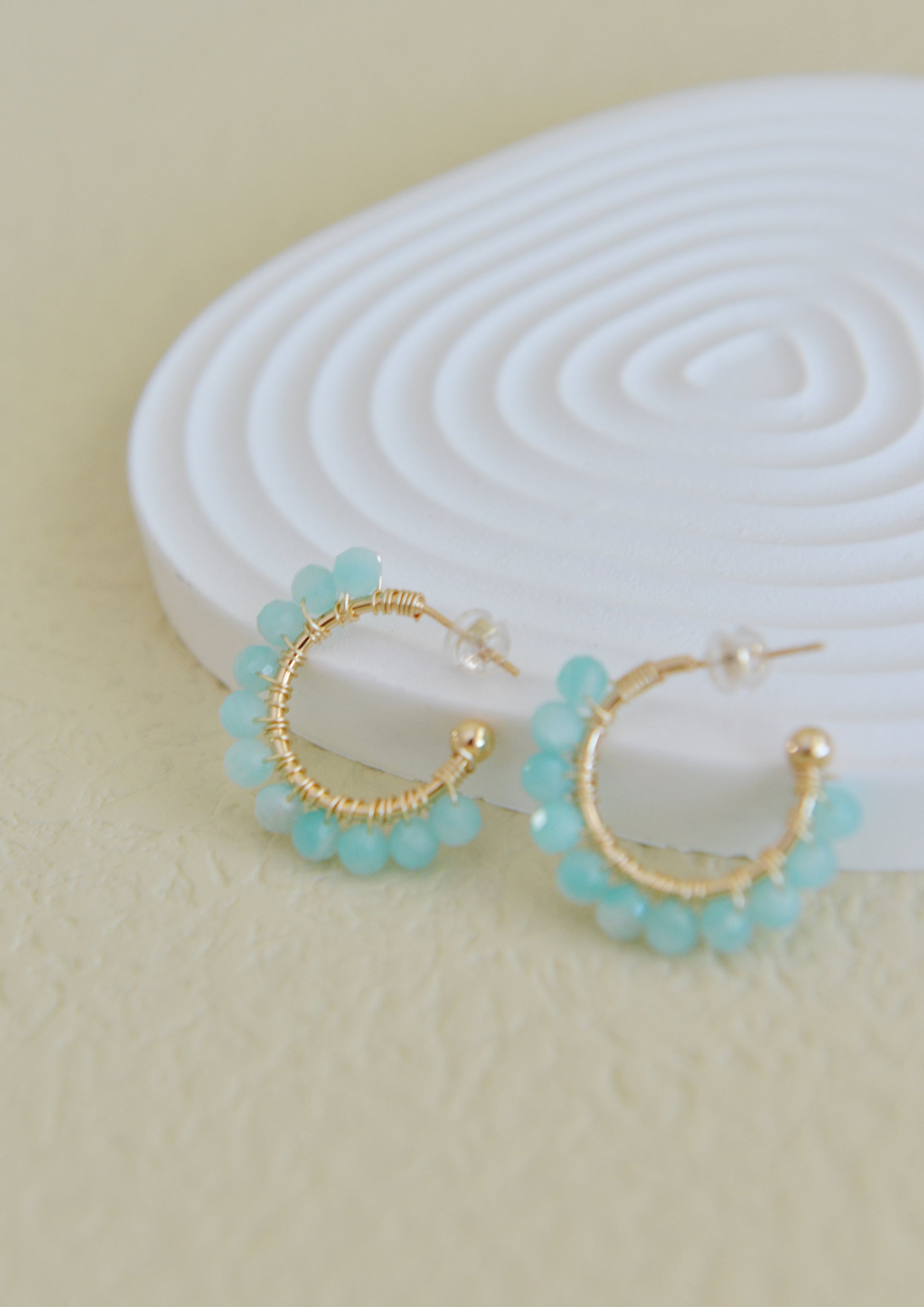 For these earrings, we offer DIY SET and finished products for you to choose from. The metal part are copper with 14K gold plating. The gemstone part is natural amazonite, which is of very good quality and therefore presents a very pure green color.