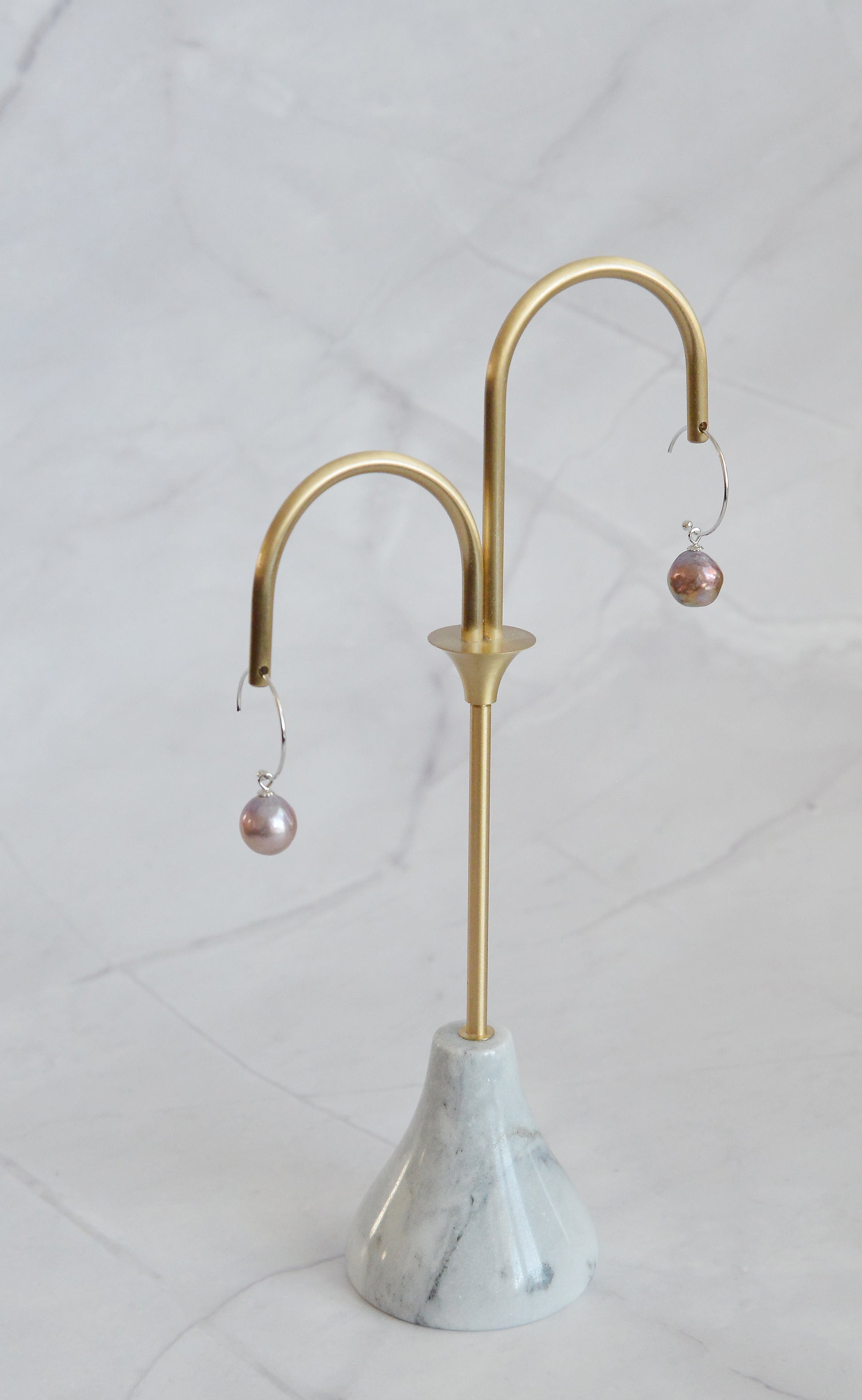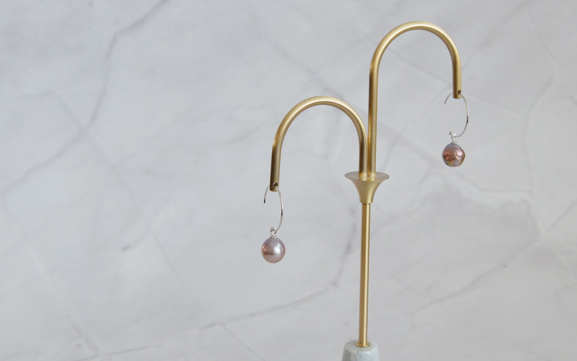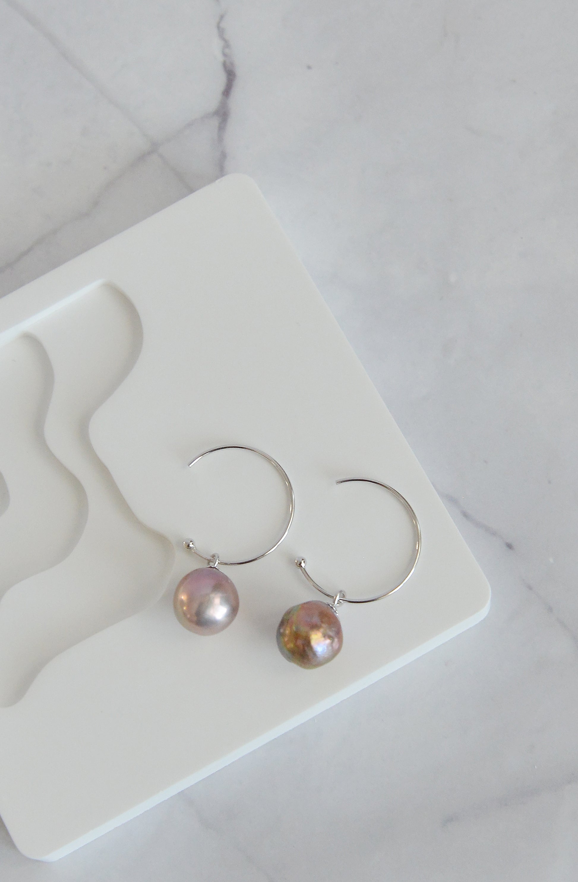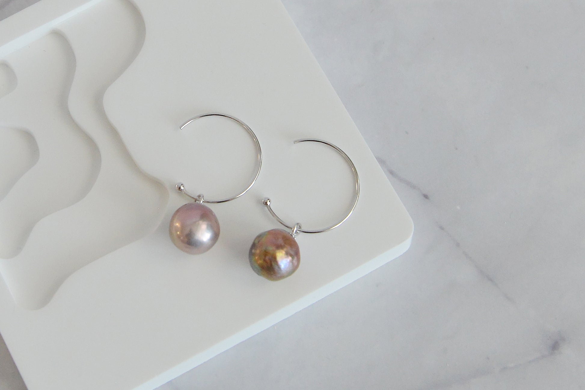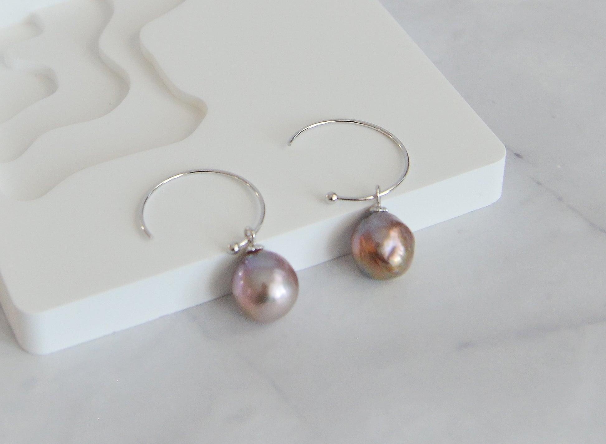 These minimalist design earrings are made of sterling silver and the pearls are metallic purple baroque pearls. The pearls are approximately 10mm and are genuine freshwater pearls.