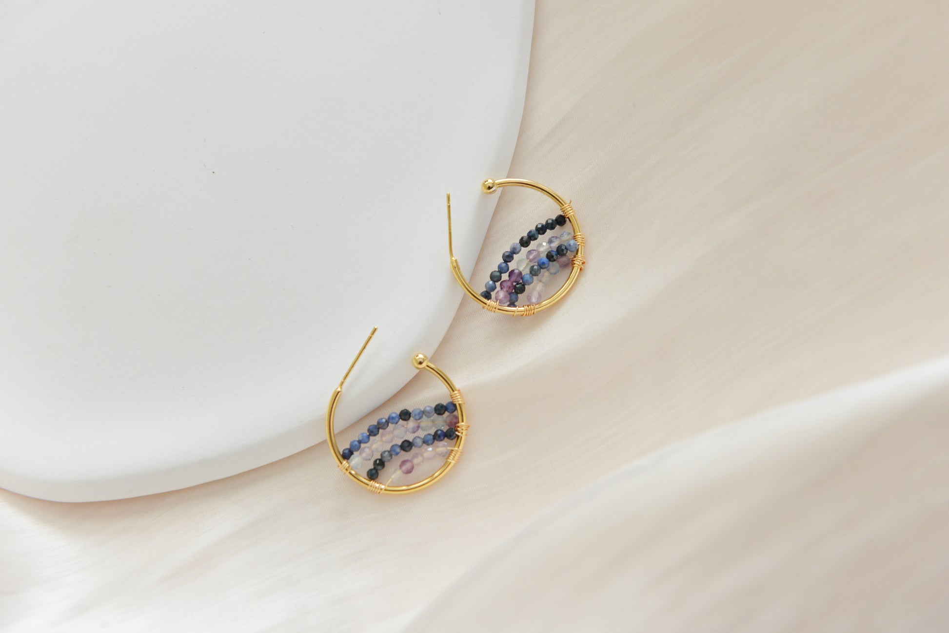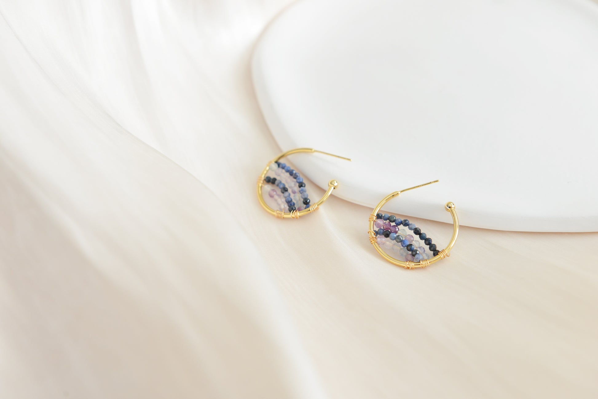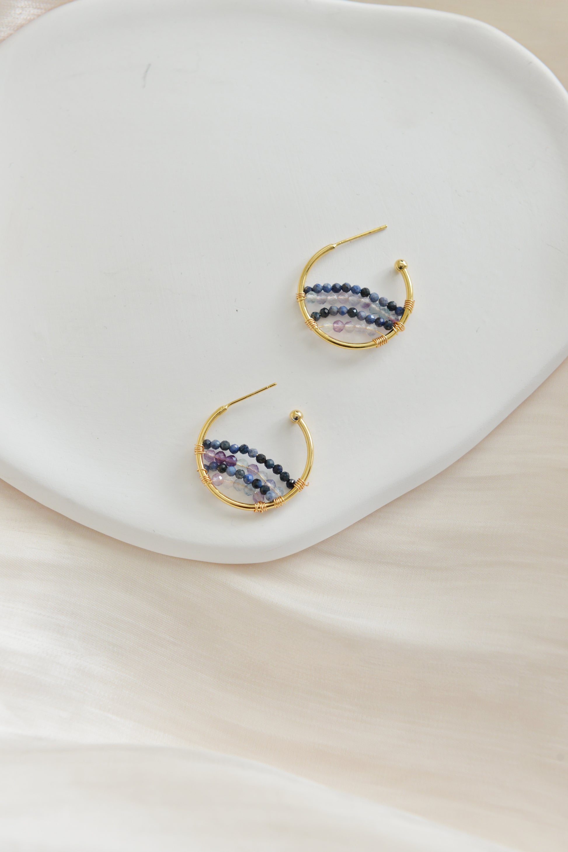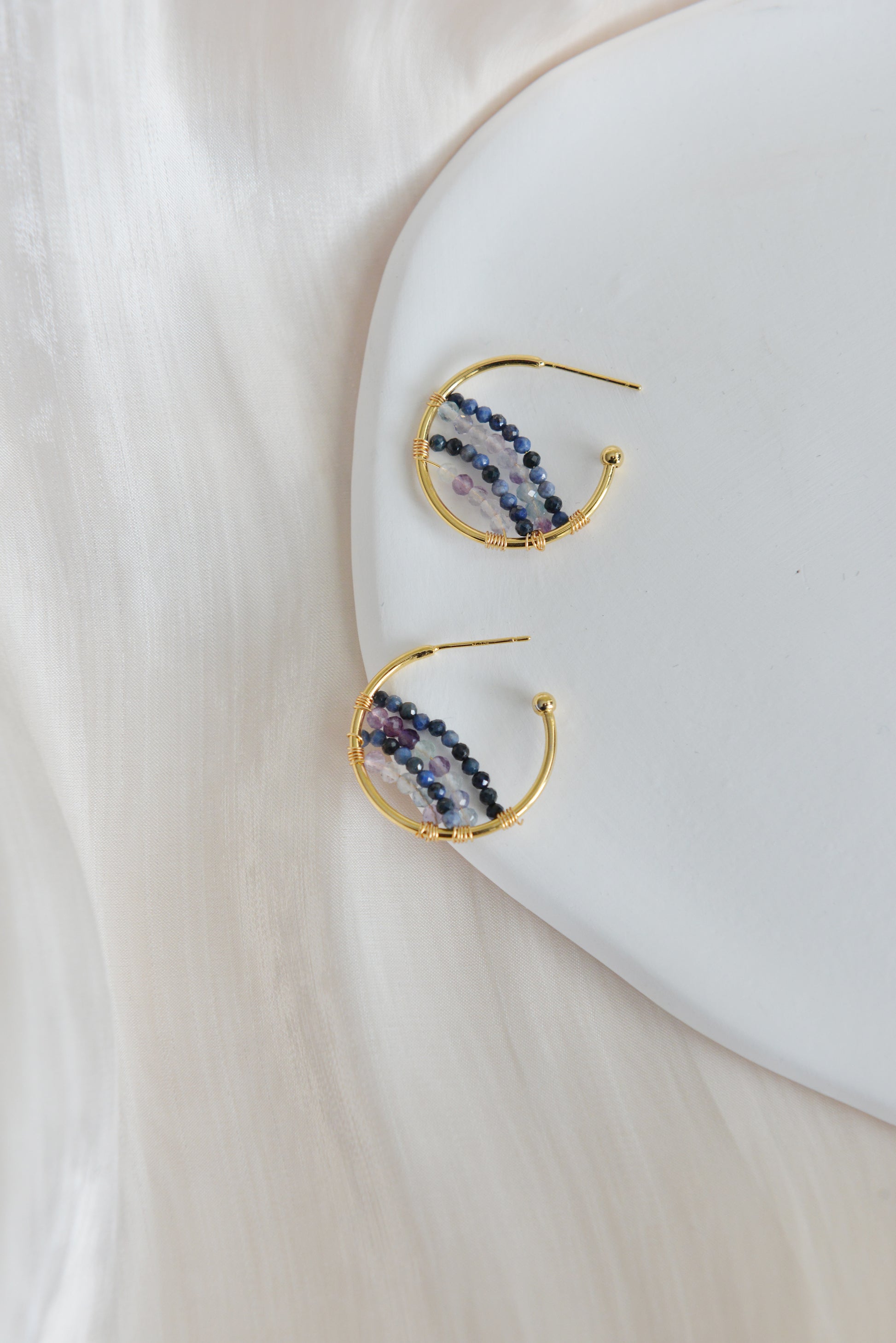 Handmade natural gemstone earring/cordierite +Kyanite hoop earrings