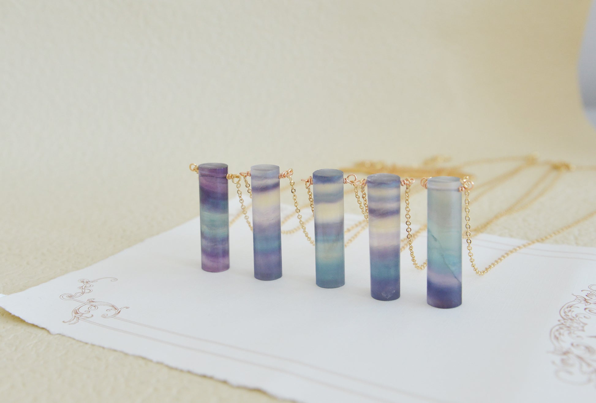 Fluorite gemstone pendant on a custom length Gold Filled chain. Each natural Fluorite pendant is different and one-of-a-kind.