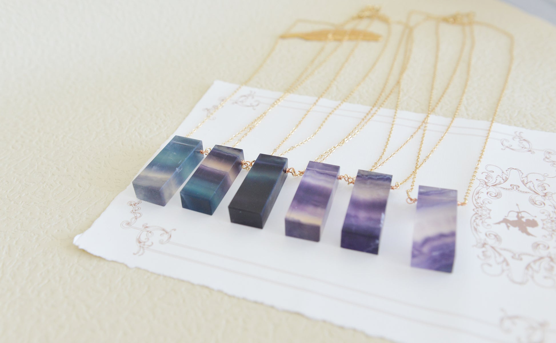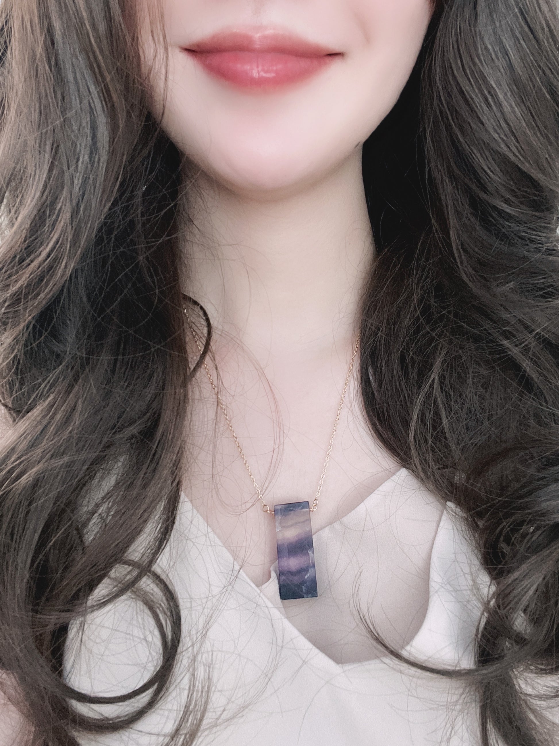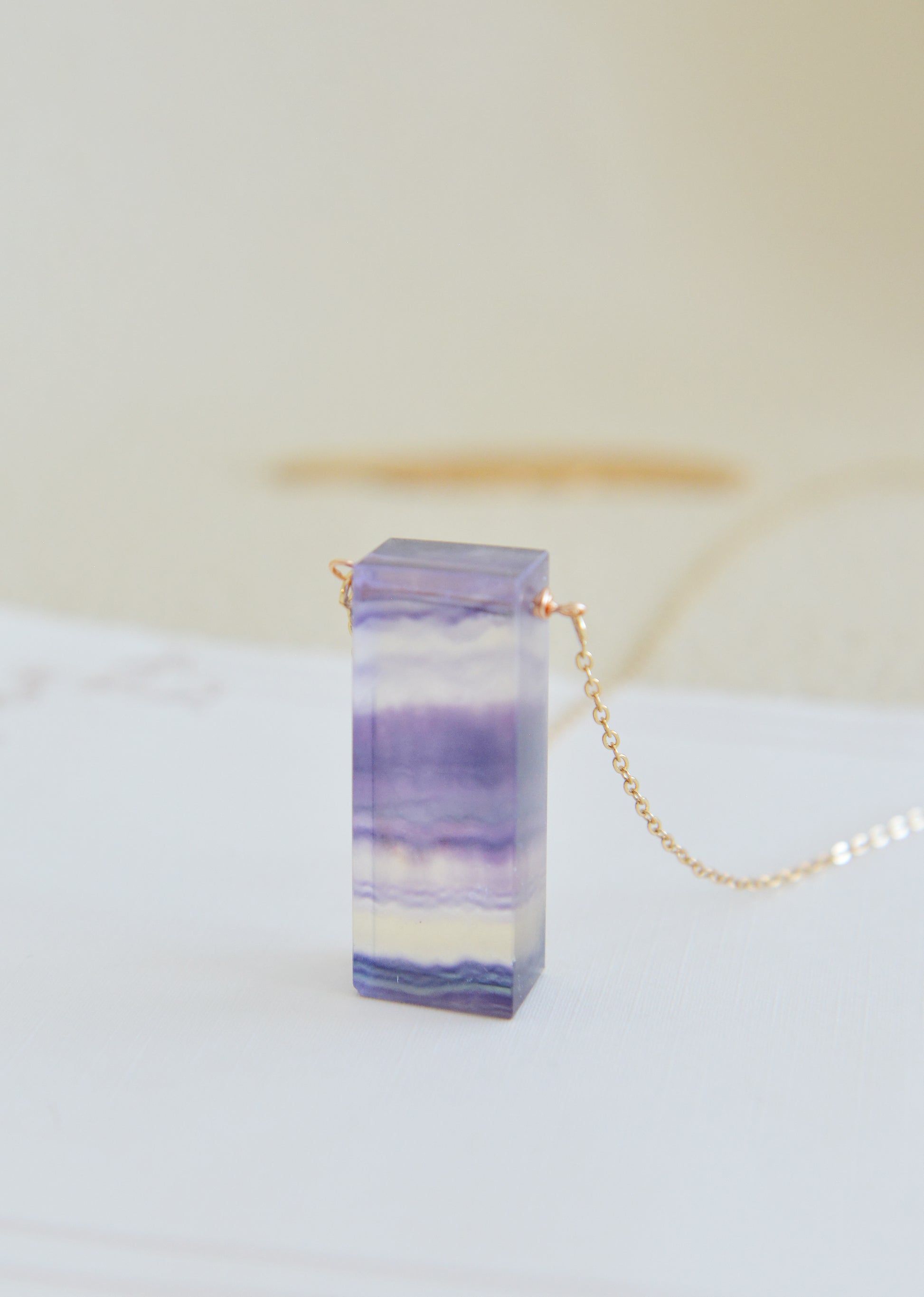 Fluorite gemstone pendant on a custom length Gold Filled chain. Each natural Fluorite pendant is different and one-of-a-kind.
