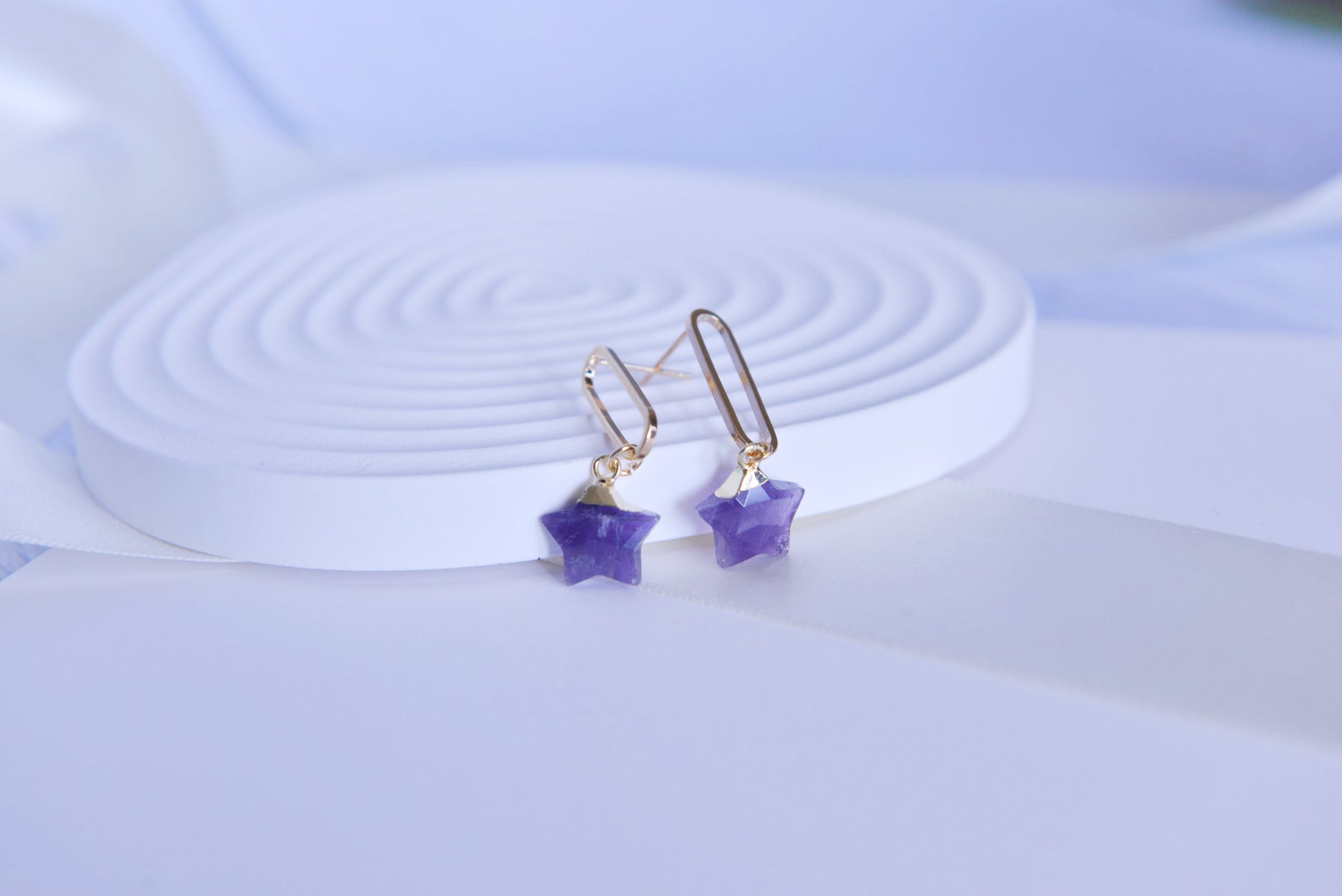 Handmade Natural Gemstone Jewelry Set/Real Crystal /Star Earring/ Amethyst Earring/Amethyst Necklace/