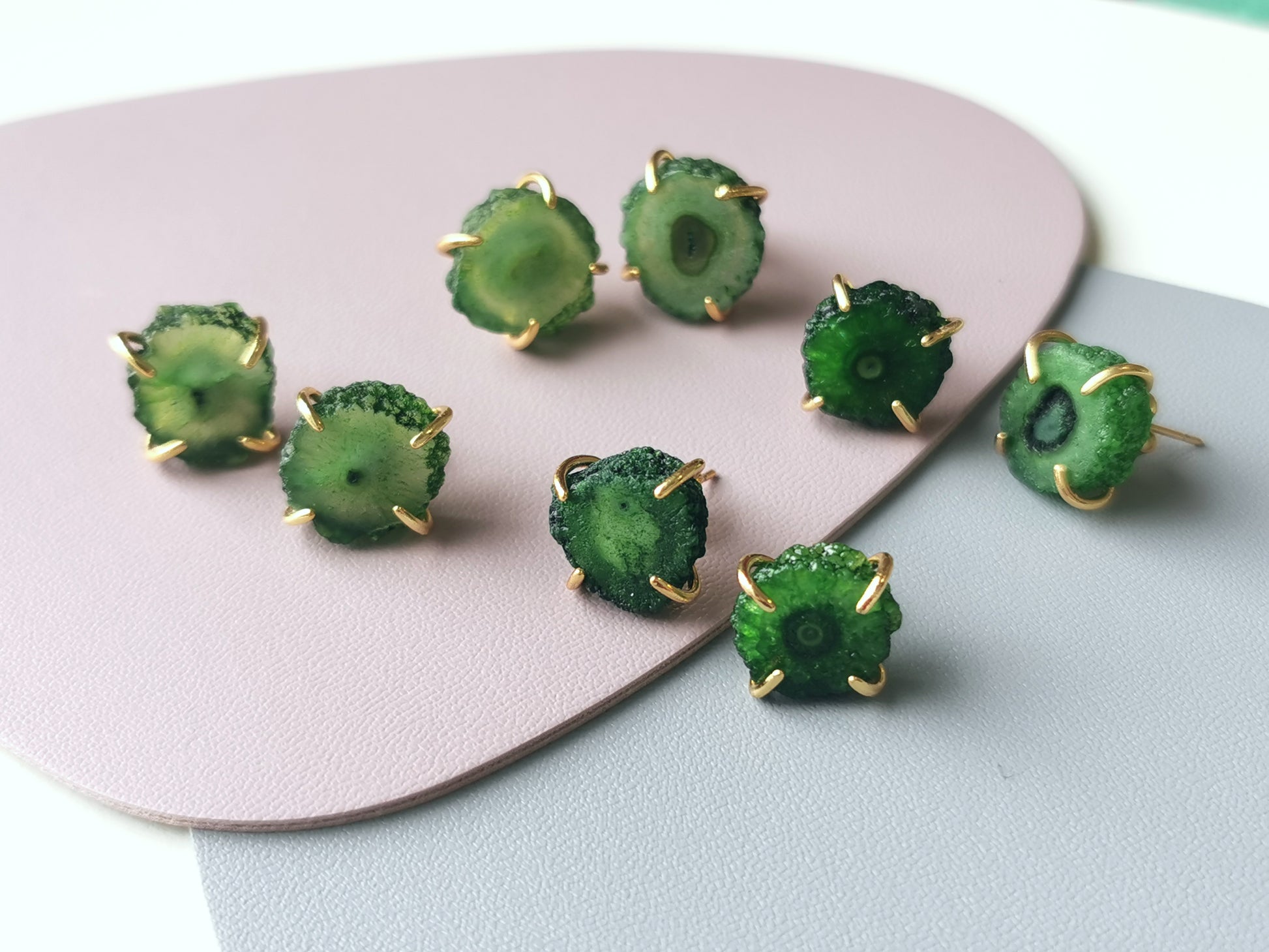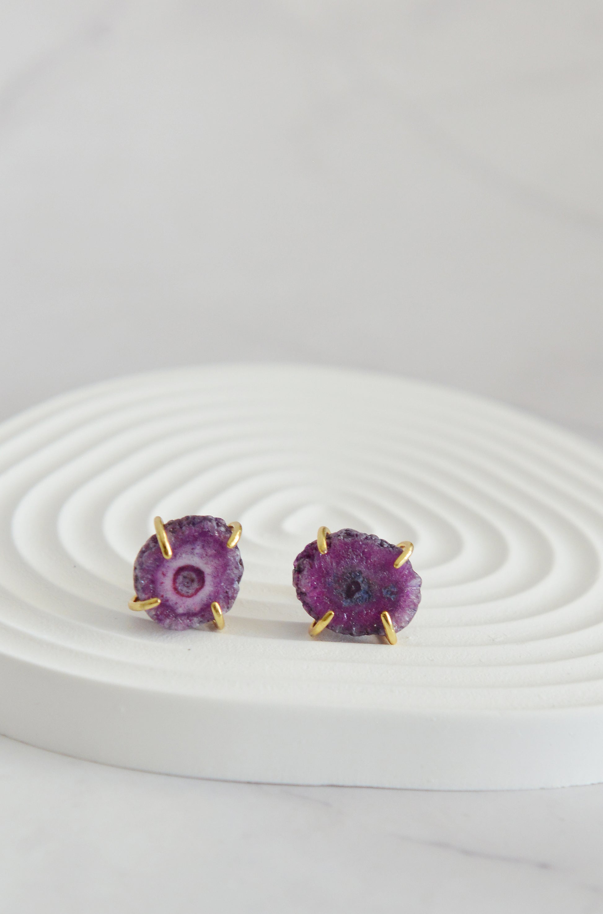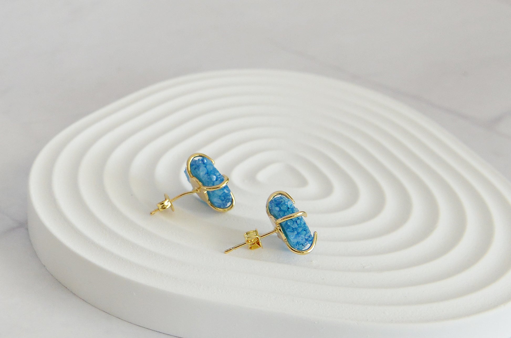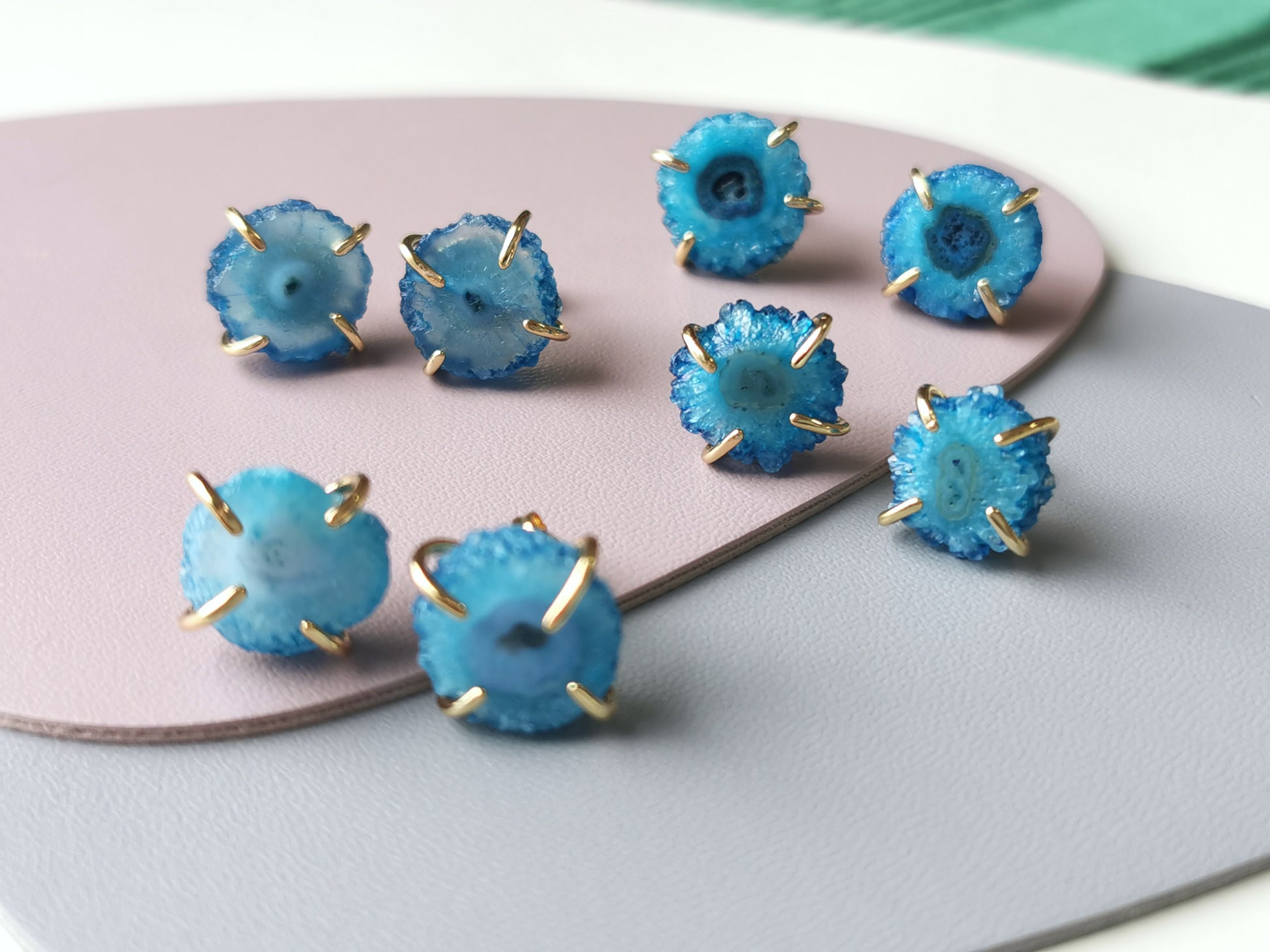 Handmade Natural Gemstone/Real Crystal Earrings/ blue Agate earrings/Purple Agate Earrings/Green Agate/Stub Earrings/Raw Agate Earrings