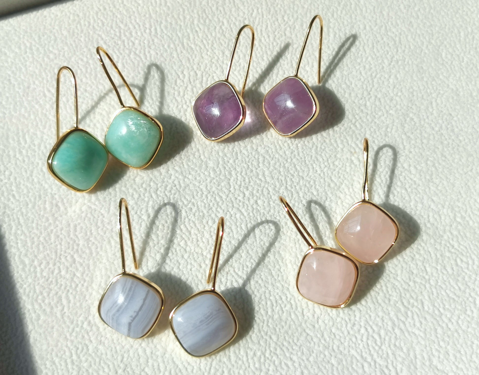 Handmade Natural Gemstone/Real Gemstone Earrings/Amethyst Earrings, Amazonite Earring, Rose Quartz Earrings, Blue Lace Agate Earrings