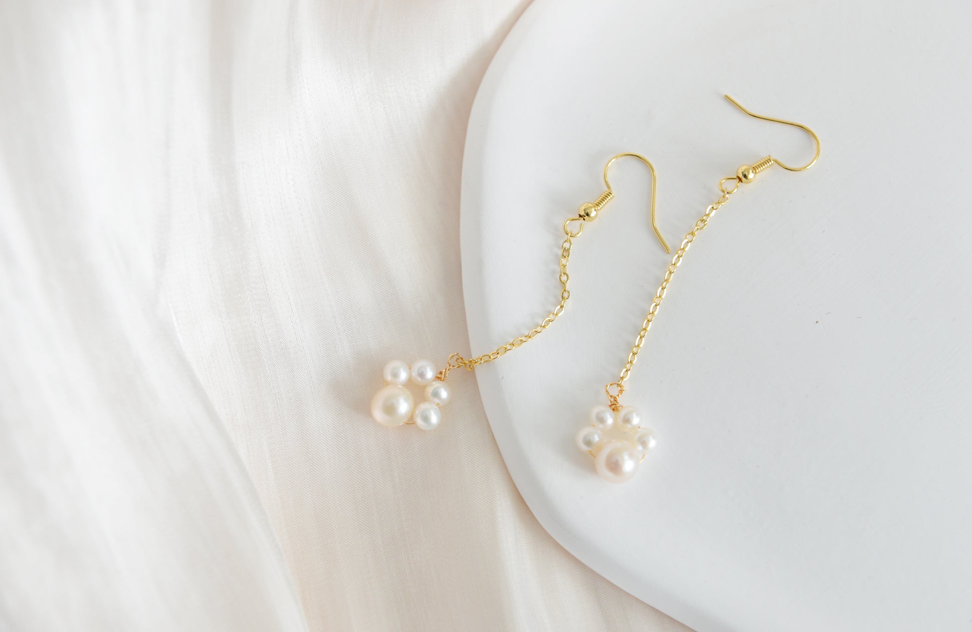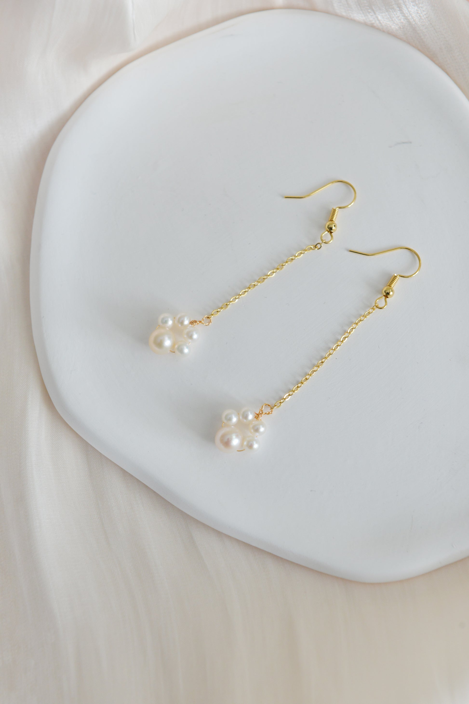 Handmade natural pearl earrings/cute paw drop earrings