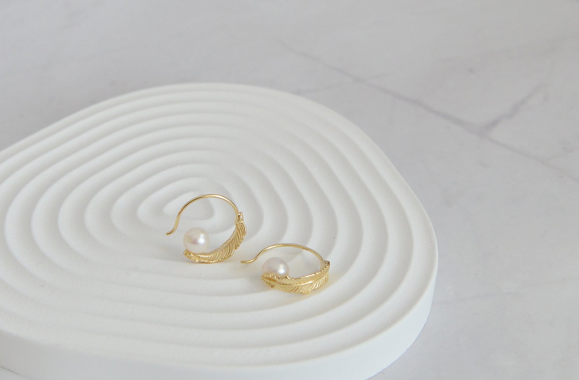 Handmade Natural Pearl Stub Earrings/Dainty Natural Pearls Earrings/White Pearl Earrings/ Vintage Anniversary Gift for Lover/gold feather hoop earring/