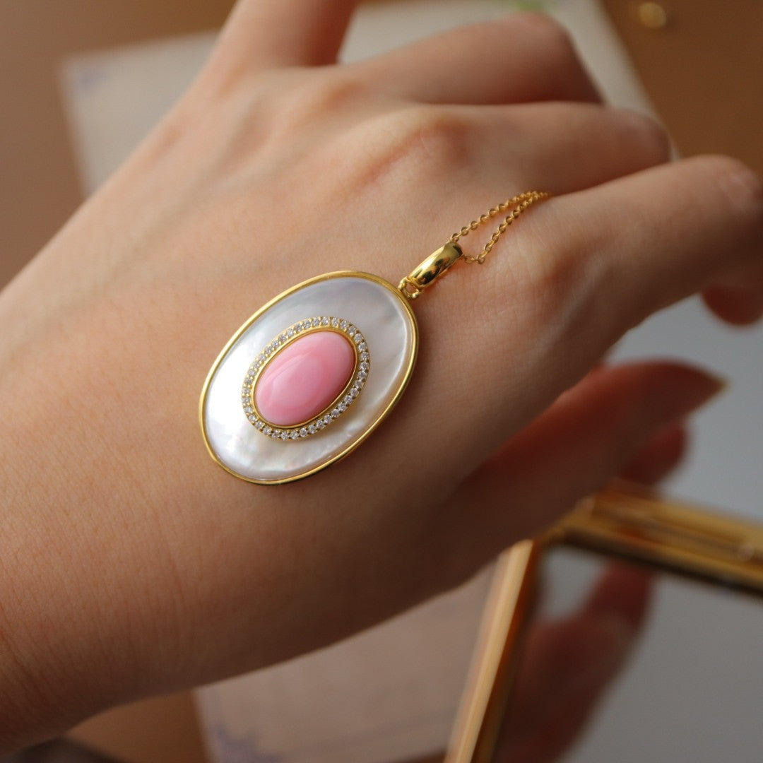 This stunning piece pendant is designed with pink queen conch pearl. It will be a good choice for a loved one for any occasion, such as Valentine's day, wedding, mothers day.